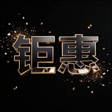 3D立体鎏金大字,搭配霓虹光效与粒子爆炸,金属质感闪耀,融合闪电、红包元素,营造奢华酷炫促销氛围,节日限定福利感十足。