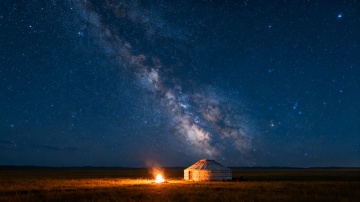 深邃的夜空,无数星星闪烁,形成渐变的深蓝色调,从地平线向上逐渐加深,地平线处有柔和的蓝色光晕,下方是起伏的黑色山丘轮廓,整体画面静谧而神秘,具有极简的自然景观风格和柔和的光影过渡效果。