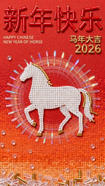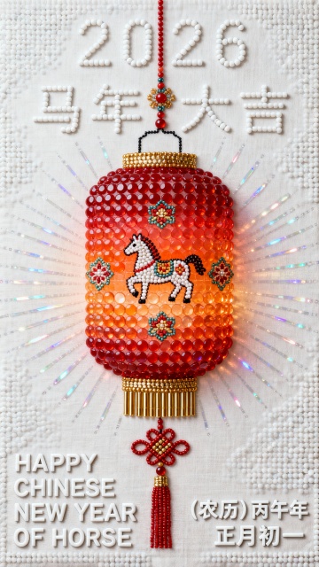 Greg Rutkowski 风格 3D 灯笼字“新春”,每一笔皆由精细金色灯笼纹理构成,灯笼纹理真实、细密、层次分明,具有东方节庆质感,边缘柔化处理,细节圆润不过硬。极简纯红色背景,干净、克制、高级,纵向构图,主体居中正视图。 整体光影层次丰富而克制,主光柔和、辅光精准,具有大师级光影控制能力。OC 渲染风格,16K 超高清输出,极致细节表现,纹理、光影与材质全部拉满,整体呈现高级东方审美与现代极简结合的高端视觉风格。 画面为高清平面海报设计,色彩高度克制,极简几何构成,留白充足,整体氛围轻盈、安静、充满新一年开始的仪式感,不喧闹、不堆砌节日元素,偏高端品牌新年主视觉。 左侧文字区排版设计: 顶部: 极细手写体英文,极小字号 “HAPPY CHINESE NEW YEAR” 中部主标题: 大号优雅花体变形字体 「春节快乐」 时间信息区(上下排布): 小号无衬线字体 “HORSE YEAR” “正月初一” 底部祝福文案(两行上下排布): 小字号无衬线中文“新一年的愿望 正在被小马悄悄点亮”整体文字排版轻盈、克制、呼吸感强,与主体灯笼字保持明确视觉层级,不抢主体、不制造拥挤感。整体风格为极简、高级、安静的新年视觉表达。