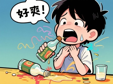 搞笑漫画风格,内容为“喝完酒,抠喉来解酒是不健康的行为“
