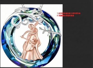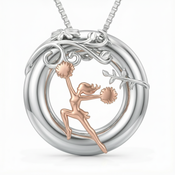 根据这张手绘设计图,帮我生成新的3D立体图 要求: 1.纯银材质精制,采用925银镀高光工艺,呈现饱满圆弧月亮造型吊坠。流畅曲线勾勒主体轮廓,画面主体突出,材质质感真实,背景为纯白净色,1:1比例构图,符合电商高清主图标准,展现珠宝首饰设计的高级感与工艺细节。 2.帽子、裙子、鞋子镀浮雕玫瑰金 3.头发镀浮雕白金、萨克斯、手臂和大腿皮肤镀白金