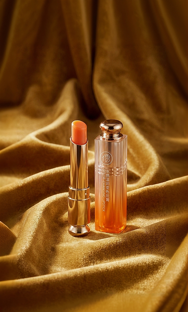 产品宣传广告,无字幕,完整台词:“琉璃镜面水感唇釉,成膜快不沾杯,上嘴秒变嘟嘟唇。蜜桃豆沙调超显白,轻轻一涂,唇间自带灵动光彩!”详情