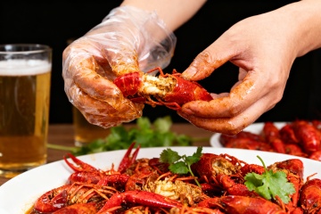 重拟物风呈现的油亮小龙虾,融合中式烹饪元素,实景感十足,光影交错间透出浓郁喜庆气息,液态汤汁与体积感外壳交织,油画质感尽显美食诱惑。
