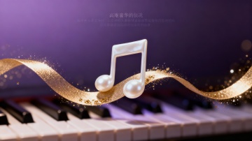 浅蓝色背景上,由白色发光的五线谱曲线和多种音乐符号(高音谱号、八分音符、四分音符、升号)组成的优雅音乐元素图案,符号呈现柔和的半透明发光效果,曲线流畅自然地在画面中形成环绕式布局,整体保持简约现代的设计风格,营造出宁静而富有韵律感的氛围。