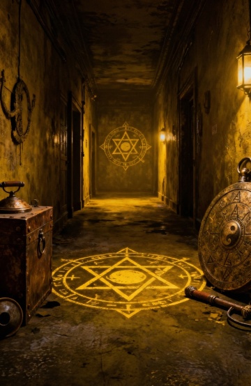 暗夜中的中式鬼魅,刺绣华服与浮雕头饰交织神秘,双重曝光的幽瞳环绕,3D质感强化哥特惊悚,光影沉郁,古典民族风中透出灵魂的低语。