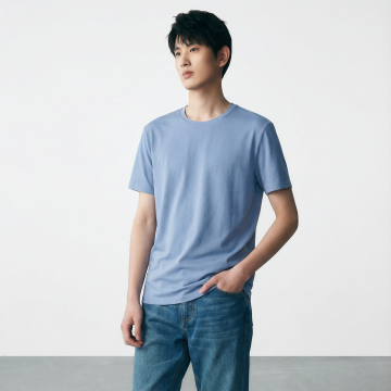 把白底图的衣服穿到模特身上 场景:灰色地面与白色背景,光线自然,背景简洁 画质要求:写实,8k,高细节,对焦清晰,光线自然,无变形