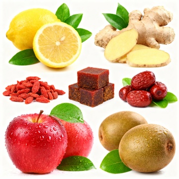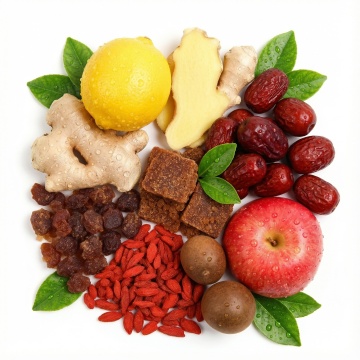 一组6个不同中药元素的系列素材集合,每个元素均采用高清写实摄影风格,保持与原图一致的柔和自然光照明,展现药材的自然纹理和真实质感,统一使用纯白色纯色背景,元素包括:1. 完整的干制当归根,切面可见细密纹理;2. 几枚饱满的干枸杞,呈现自然橙红色;3. 一小撮卷曲的干菊花,花瓣层次分明;4. 数片平整的干荷叶,边缘略有卷曲;5. 一小堆颗粒状的干茯苓块,表面粗糙;6. 几根完整的干党参,呈类圆柱形,表面黄棕色至灰棕色,整体布局规整排列,每个元素独立清晰,具有极强的信息传达效率和专业中药材展示的设计感。