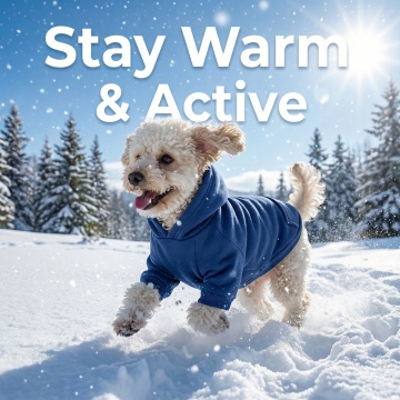 以图中的狗衣服为元素,冬季保暖,设计4张跟狗衣服有关的广告图,英语,比例 「1:1」