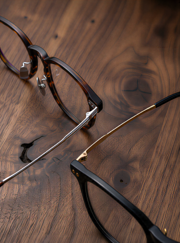 简约现代风格的眼镜产品展示图,白色纯色背景,中央规整排布单一元素——一副眼镜,眼镜为黑色镜框与银色金属镜架的组合设计,镜片透明,整体造型清晰、边缘锐利,无任何文字、logo或水印,光线均匀柔和,呈现出干净利落的产品质感。