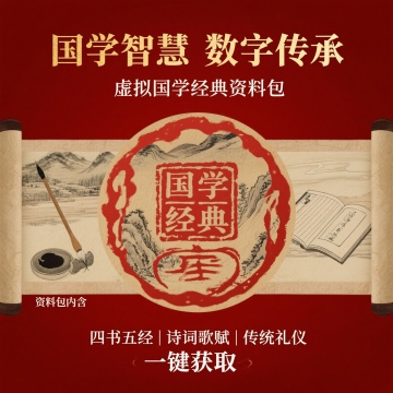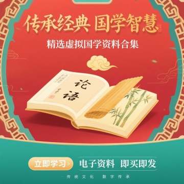 帮我设计一张800乘以800尺寸的电商图 要求红底大气简约 可以更改文字的中国风设计模板 我要买虚拟国学资料 多设计几张我挑选
