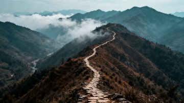 逆光俯视角,晨雾未散的竹林深处,一束金色阳光如利剑般穿透层层叠叠的竹叶缝隙,在布满青苔的地面上投射出斑驳陆离的光影图案。几株挺拔的翠竹以黄金分割比例分布画面,修长竹竿上的竹节在光线斜照下形成深浅不一的阴影,顶端新生的嫩绿竹叶带着露珠微微颤动,与底部深绿的老叶形成鲜明对比。竹林深处隐约可见一条蜿蜒的青石小径,雾气在竹间流动,空气中漂浮着细密的光斑,整体色调以翠绿为主,点缀着阳光的金黄与竹影的墨绿,营造出一种既静谧又充满生命力的禅意氛围。