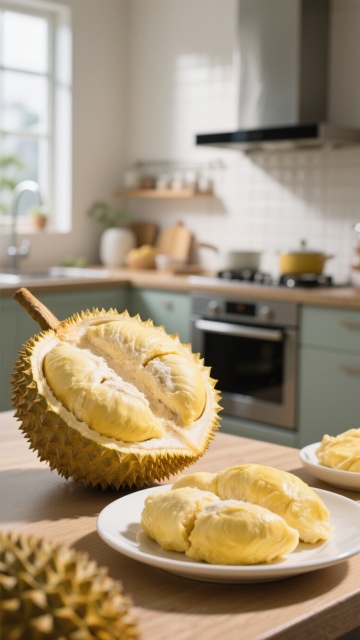 高清水果摄影风格,泰国金枕榴莲,实拍摄影,新鲜水果