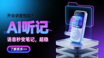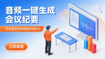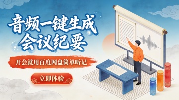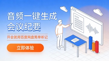 这是一张竖版扁平插画风格的会议工具推广图,主色调为深紫与蓝紫渐变背景,搭配白色、浅蓝、粉紫点缀,营造专业、智能、现代的科技氛围。画面左侧是超大号立体字“百度网盘 简单听记”,字体从白到金黄渐变,带描边增强视觉冲击;下方配小字“超智能的会议助手”,强化产品定位。底部设紫粉渐变圆角按钮“点击开始听记>”,引导用户操作。右侧是三人协作场景:一位男性角色站立指向巨型蓝色数字屏幕,屏幕上显示对话气泡与图表,象征实时记录与内容可视化;另两人分别坐于笔记本电脑前与站立交流,体现多人会议协作。背景融入抽象绿叶图案与几何图形,增添活力与空间层次。构图左文右图,信息层级清晰,视觉动线自然聚焦品牌与功能入口。整体设计突出“智能、便捷、协作”的核心价值,适用于企业或教育场景下的AI会议记录工具宣传。