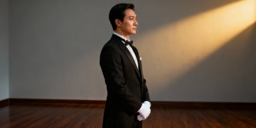 胶片风光影中,沉郁面容透出故事感,实景氛围营造深邃情绪。