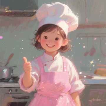 一只胖猫正面蹲在擀面杖上面,戴着厨师帽,手绘风格,清晰度3000