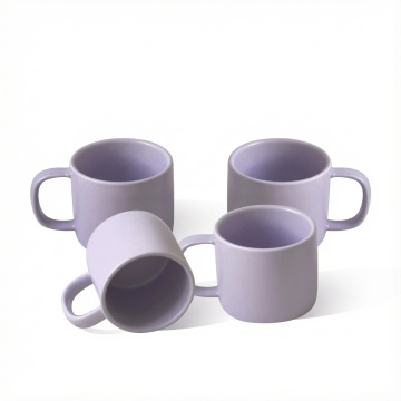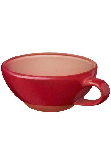 六个不同样式、不同风格、不同配色的陶瓷杯子,每个杯子都具有光滑细腻的釉面质感,如原图中红色杯子般的圆润杯身轮廓和简洁手柄设计,杯子排列整齐呈规则队形,置于纯白色背景上,整体呈现出高清晰度、明亮柔和的光线效果,无阴影干扰,突出每个杯子的独特造型与色彩特点,设计风格简约现代,信息传达清晰直观。