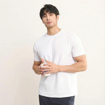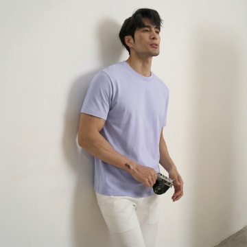 把白底图的衣服穿到模特身上 场景:灰色地面与白色背景,光线自然,背景简洁 画质要求:写实,8k,高细节,对焦清晰,光线自然,无变形