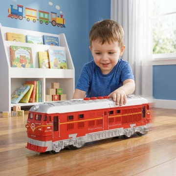 改为室内背景,这是一个玩具火车,另外背景要铺满画面,不要灰色的边