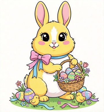 清新水彩风插画,可爱小兔置身花丛,实景感十足,尽显春天活力。