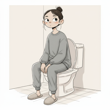 保持人物一致性,以及画风,无奈的表情抱着婴儿上厕所
