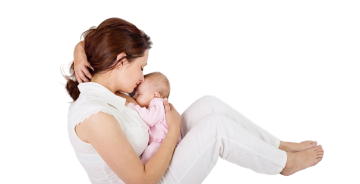 简约线条插画风格,白色背景,以柔和的紫色单线条勾勒,描绘一位长发母亲温柔地将婴儿斜抱在怀中,婴儿头部依偎在母亲肩部,母亲一手托住婴儿臀部,一手轻扶婴儿背部,身体微微侧向一侧,线条流畅自然,保持原图中蜿蜒飘逸的紫色曲线装饰元素,整体呈现温馨、宁静的氛围,具有清晰的视觉层次和简洁的设计感。