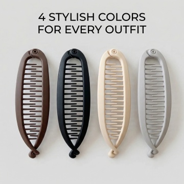 6个不同配色、不同样式、不同材质的夹子造型,采用上下两行对齐排列,每个夹子都具有清晰的金属质感和光滑表面,细节丰富,立体感强,背景为浅色,整体呈现出简约现代的设计风格,画面干净整洁,突出夹子的形态和材质特点。