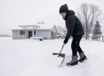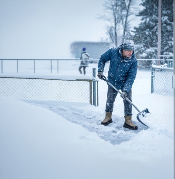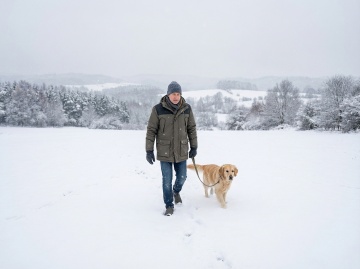 背景改为冬季,男人穿着羽绒服