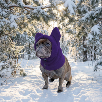 中年美国男子穿着这个鞋,在雪地上遛狗,下着雪