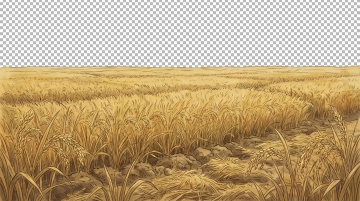 中国风插画风格,金色麦穗田野在夕阳下随风摇曳,饱满的麦穗颗粒分明,绿色麦秆挺拔有力,画面下方三分之二是一望无际的田野,上方三分之一是渐变的橙黄色天空与落日余晖,营造温暖喜悦的丰收氛围,留白占比35%,整体色调以金黄、橙红、翠绿为主,线条流畅,色彩明快,传递出对生活满足的幸福感。