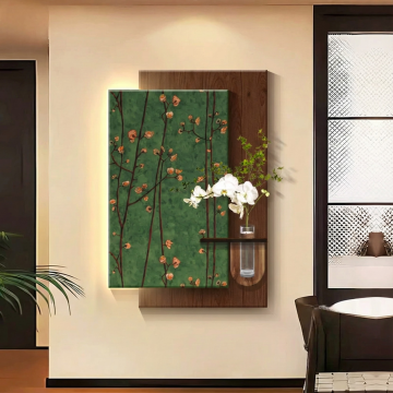 构图:侧方 45° 角度,突出 “壁灯的装饰性 + 与周围新中式软装的适配度”,景深柔和(主体壁灯清晰,背景轻微虚化)。”