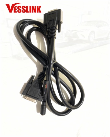 银灰色哑光质感底,搭配轻量化车辆数据传输元素(细线条数据流、淡色汽车系统图标),元素分布在产品两侧空白处,不遮挡检测仪