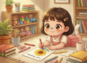 梦幻水彩插画风,母子互动温馨可爱,泡泡与星光点缀,营造温暖治愈的亲子时光。