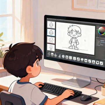 温馨插画风,水彩质感,老师与孩子们在艺术教室共创美好瞬间。