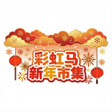 国潮风毛绒大字“新年快乐”搭配卡通鹿玩偶,浮雕质感与毛发生长效果营造喜庆可爱氛围,金元宝点缀,传递2026新春祝福。