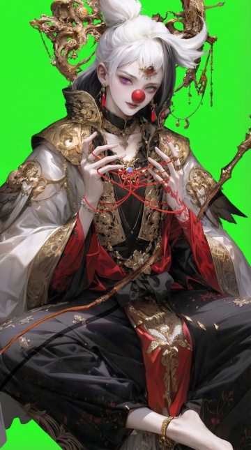 厚涂凌乱笔触,中式怪诞风格,水墨质感,工笔勾勒,中式诡异,展现神话与传说的神秘感,线条水彩混成,神秘元素,色彩鲜艳丰富,国潮元素,高清色彩,诡异的气氛,奇幻,高清,造型夸张,大胆的线条勾勒 ,色彩对比鲜明,线条简洁,华丽的苗疆美人,是一名大祭司,华丽的服饰,黑色长发,繁复盘发发型,辫子,戴着铜钱流苏装饰的装饰,身上戴着夸张图案的傩舞漆画面具,面具上有两个红色怪兽角,另一只手里拿着驱魔杖,诡异,怪异,红绳铜钱,幻雾感,概念设计,有金色符咒法阵,缥缈,,超高清,超质量,诡异又绝美的氛围,黑暗美学,充满活力的色调,电影般的灯光,复杂的细节,视觉冲击力,灵异,大师级构图,杰作,8k,超清,细节精细,脸部光影明暗对比,红蓝,视觉冲击,