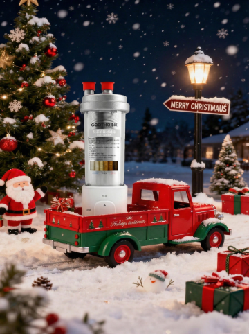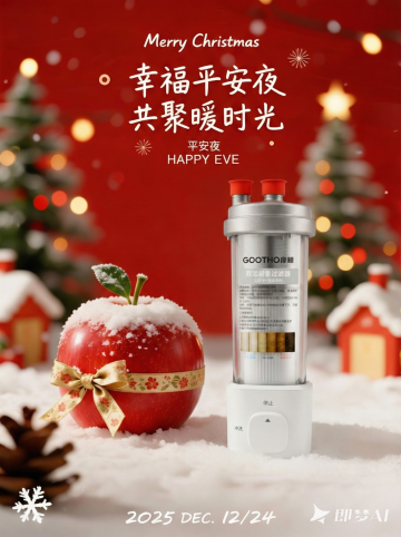 喜庆红绿配色,科技感水牙线置于礼盒中,重拟物风与塑料质感结合,双色设计凸显现代感,节日氛围浓厚。