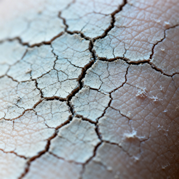 高度写实的3D医学解剖插画,皮肤多层结构的立体剖面展示,顶层有三根粗壮、乌黑、表面光滑的毛发从毛囊中长出,毛囊根部附着红色颗粒状物质,中层可见排列整齐的粉色圆形细胞结构,底层是黄色蜂窝状组织,其间分布着红色管状结构并向外渗透粉色微粒,整体色调以肉粉色、淡黄色、红色为主,光影柔和,立体感强,细节清晰,具有科学严谨的医学可视化风格,突出皮肤各层组织的微观结构和相互关系。