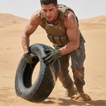 保持手套细节不变,分清正反面,一个外国帅哥穿着这双手套在沙漠打沙袋