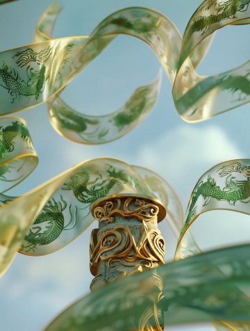插画风国潮设计,鎏金龙纹盾牌,火焰环绕,尽显神圣与威严。