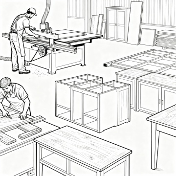要一张木工工厂生产的图,线条型,白色底,高清晰
