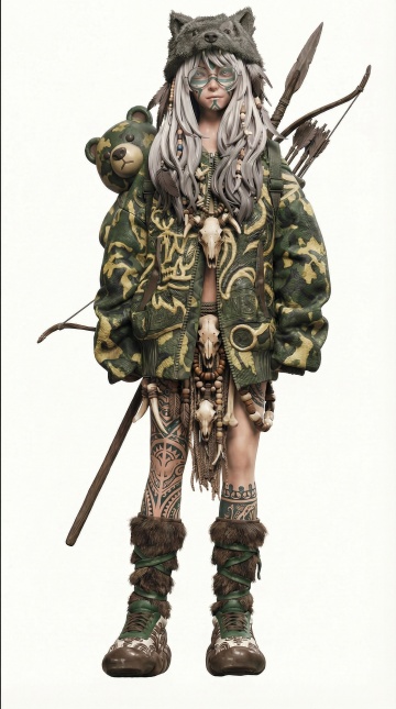 赛博朋克风3D角色,未来感科技金属设计,霓虹灯照亮夜景,展现冷酷与力量。
