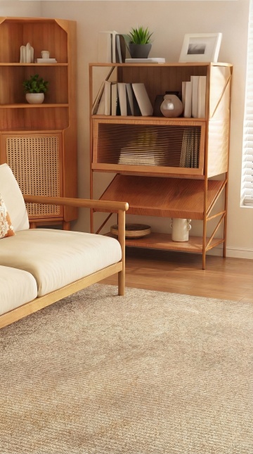 这是一个三层5格书柜 生成三张亚马逊场景图,尺寸1600*1600 分别为客厅温馨场景、书房简约场景和开放空间温馨场景,突出显示书柜产品