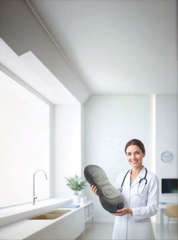 帮我生成图片:一个欧美女医生拿着这个枕头微笑展示