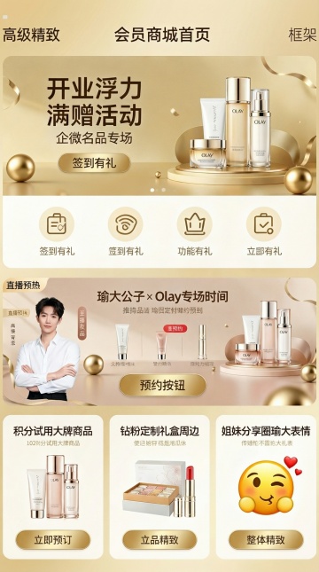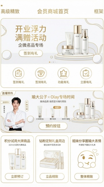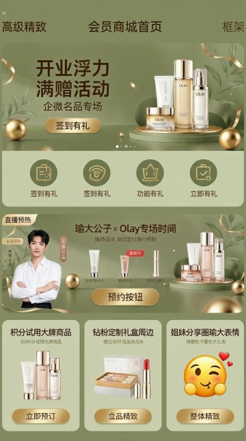 你作为一个工作15年的快手资深用户运营专家,在运营私域会员商城上颇有心得,有从0到1搭建商城的经验,请根据第一张图生成对应的框架和内容,配色相应搭配一下