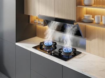 现代简约风格厨房场景,不锈钢材质的银色水龙头安装在白色石英石台面上的嵌入式水槽边缘,水龙头线条流畅、设计简洁,带有弯曲的出水嘴和旋钮式开关,表面光滑且有金属反光质感。台面干净整洁,左侧窗台上摆放着一盆盛开的白色百合花,右侧窗台上放置着几个新鲜的青柠和柠檬,窗外透进明亮的自然光,光线柔和地洒在台面和水龙头上,形成淡淡的阴影和高光,整体氛围清新、明亮、整洁、温馨,具有现代家居的舒适感和简约美学。
