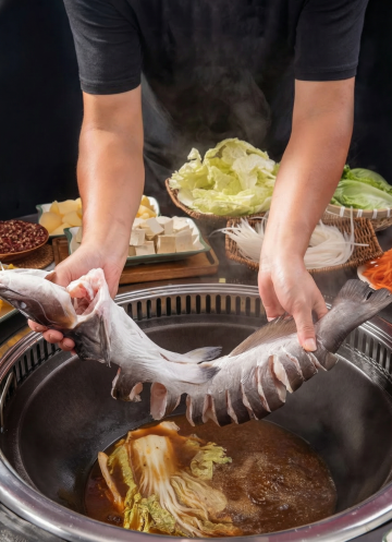 高质感餐饮美食摄影,深色背景突出食物色彩,特写沸腾的红色汤底火锅,蒸汽缭绕,筷子夹起鲜嫩肉片,周围摆放多种配菜如蔬菜、丸子、菌菇,食材新鲜饱满,光影对比强烈,高光凸显汤汁光泽与肉质纹理,暖色调营造热烈诱人氛围,不同角度展现火锅餐桌的丰盛场景,细节丰富,构图聚焦食物主体,具有强烈的食欲感和视觉冲击力。