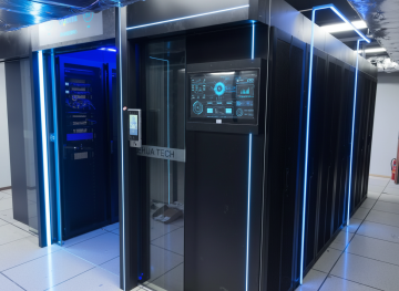 一位专业的IT工程师,亚洲面孔身穿 polo 衫,正在数据中心维护一台打开的服务器机架,手触摸数据线,专注地看着机内,旁边放着打开的工具箱和备用零件。场景明亮,逼真照片,细节精致,构图专业,科技感强。