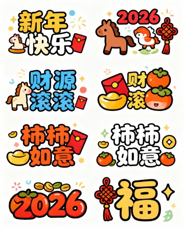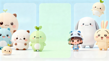 6个不同配色、不同样式的卡通素材,保持Q版可爱风格,圆润线条,简洁色块,明亮柔和色彩,白色背景,排列整齐,每个卡通形象独立清晰,无重叠,统一视觉风格,适合作为素材使用。