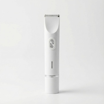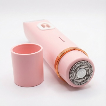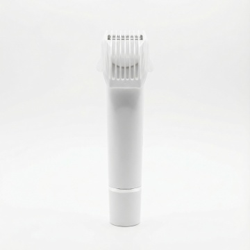 你是一个优秀的产品设计师,熟悉使用ps和3Dmax,现在给到的这个产品是个女士剃毛器。上下两个刀头,上部分为推剪,下为圆形双环刀头。现在你要做一张九宫格的高清产品图,需要展示这个产品的正面、侧面、以及装上限位器的展示。要求产品不得变形,需与参考图保持一致,颜色和造型不得改变。