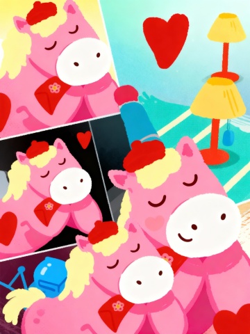 软3D毛毡风小马跃动于花丛,毛发生长质感细腻,卡通梦幻场景洋溢春日清新与可爱治愈感。